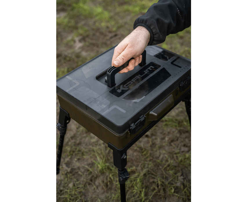 Estación de montaje de la marca Korum modelo Mega Blox, ideal para la pesca de carpfishing.