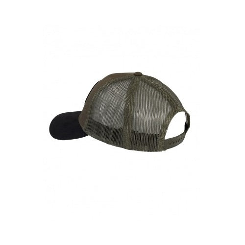 - Diseño: Estilo trucker con parte frontal estructurada en verde oliva y trasera de malla transpirable