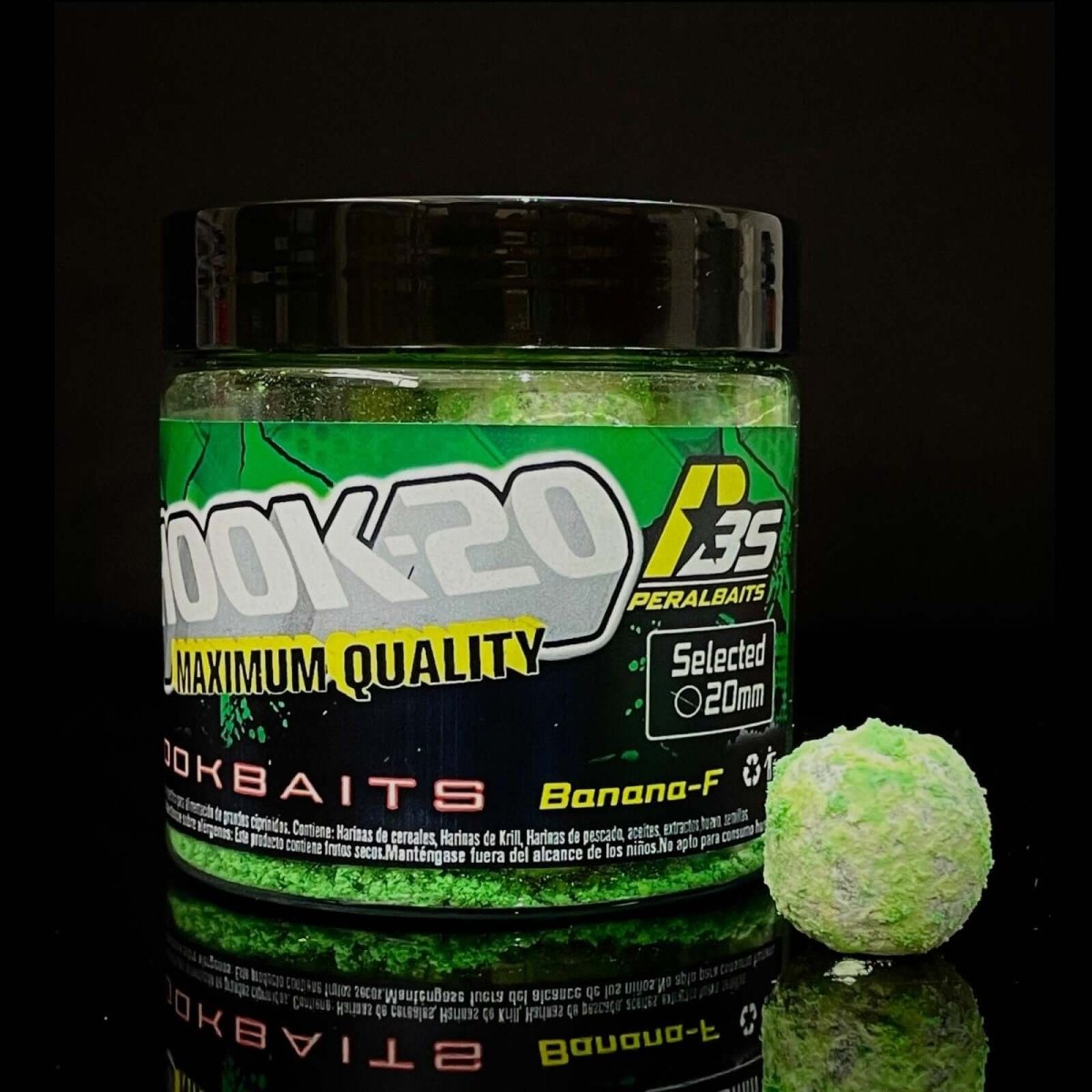 Boilies seleccionados de la marca Peralbaits, sabor Banana Fresa de 20 milímetros, especial para la pesca de grandes carpas.