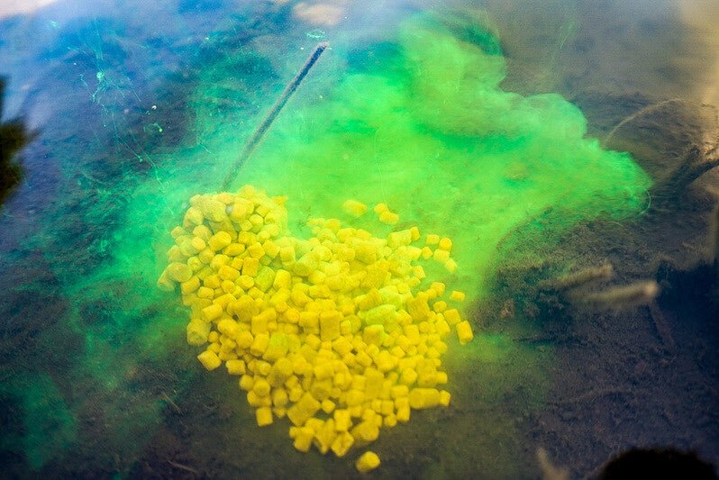 Bote de líquido fluorescente explosivo de la marca Pro Elite Baits sabor Ajo en color verde de 150 mililitros, especial para la pesca de carpfishing.