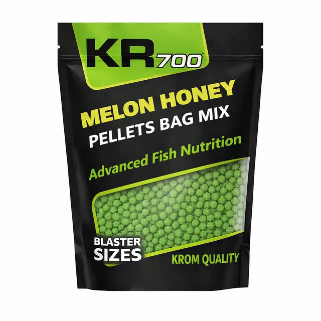 Mix de Pellets de la marca Krom Quality gama KR800 sabor Melon Honey de 4.5 mm, especial para la pesca de carpfishing.