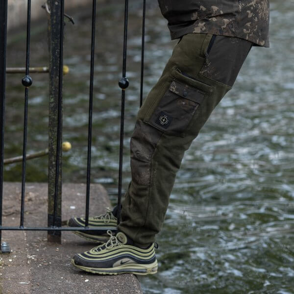 Pantalón estilo joggers de la marca Nash con diseño Scope HD en color verde con detalles camuflaje, especial para la pesca de carpfishing.