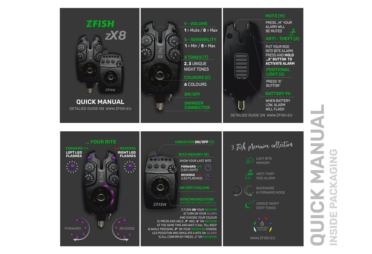 Set de 3 alarmas + receptor de la marca Zfish, modelo ZX8 Pro, especial para la pesca de carpfishing.