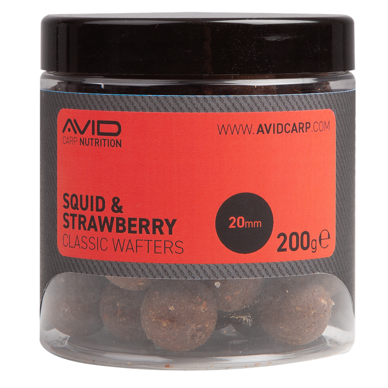 Wafters de la marca Avid Carp, gama Classic, sabor Squid & Strawberry, especial para la pesca de carpfishing.